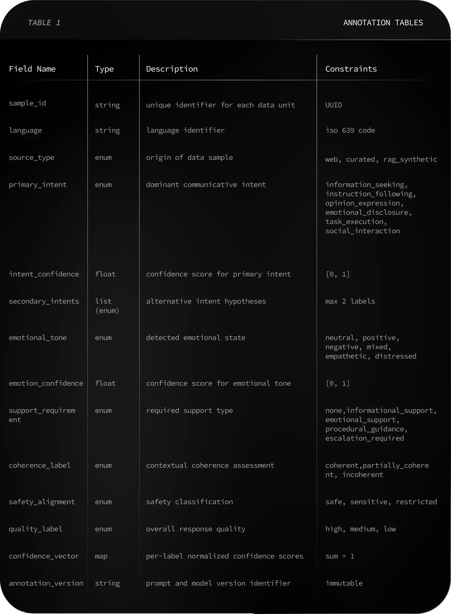 Table 1 summarizes the annotation structure.